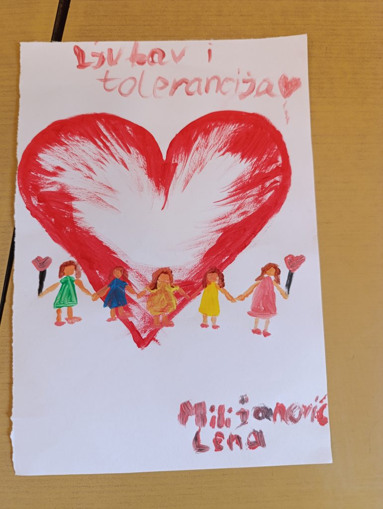 На часовима ликовне културе и српског језика, ученици од 5. до 8. разреда креирали су радове на тему Ја сам дете, имам план: толеранција и љубав за сваки дан. Њихови радови показали су колико је важно ширити љубав и толеранцију у свакодневном животу, према другарима, породици и пријатељима.