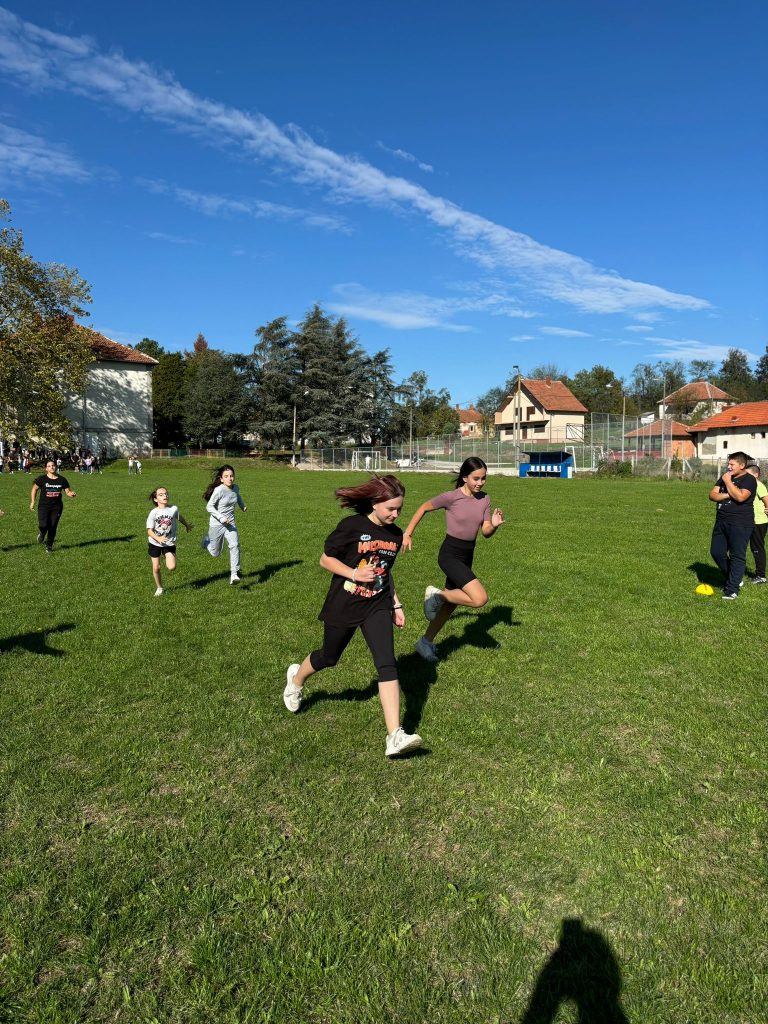 Дечја Трка за срећније детињство одржана је 10. октобра у сарадњи са наставницом физичког васпитања, Јеленом Ломић. Ученици млађих разреда показали су своје спортске вештине и тимски дух, а најбољи су добили дипломе.