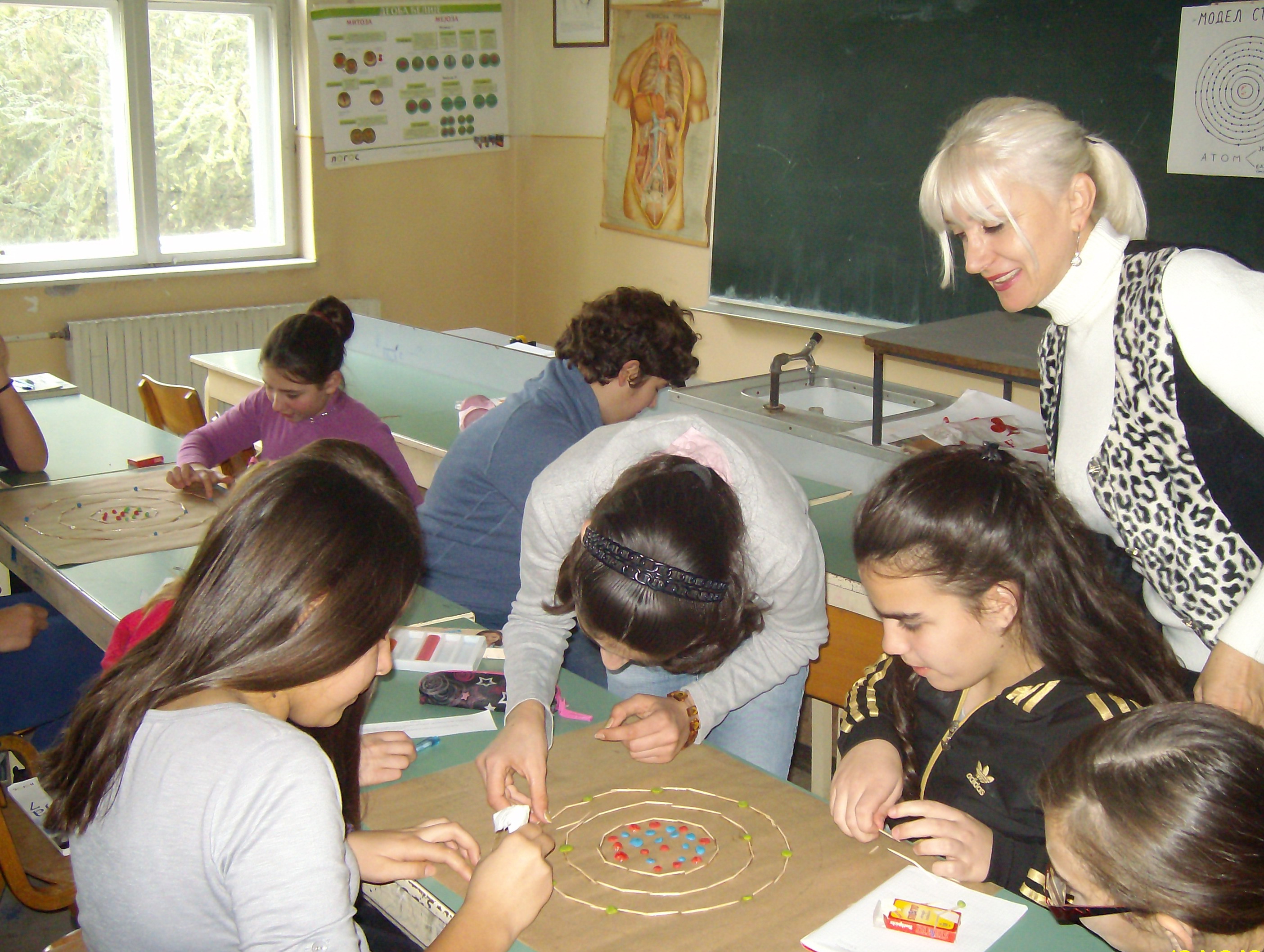Угледни час из хемије на тему Модел структуре атома реализован је 15.12.2014.године.Ученици су били подељени у три групе. Свака група је добила задатак који је решила математичким путем, а после тога свака група је практично представила моделе структуре атома којег је имала у задатку.